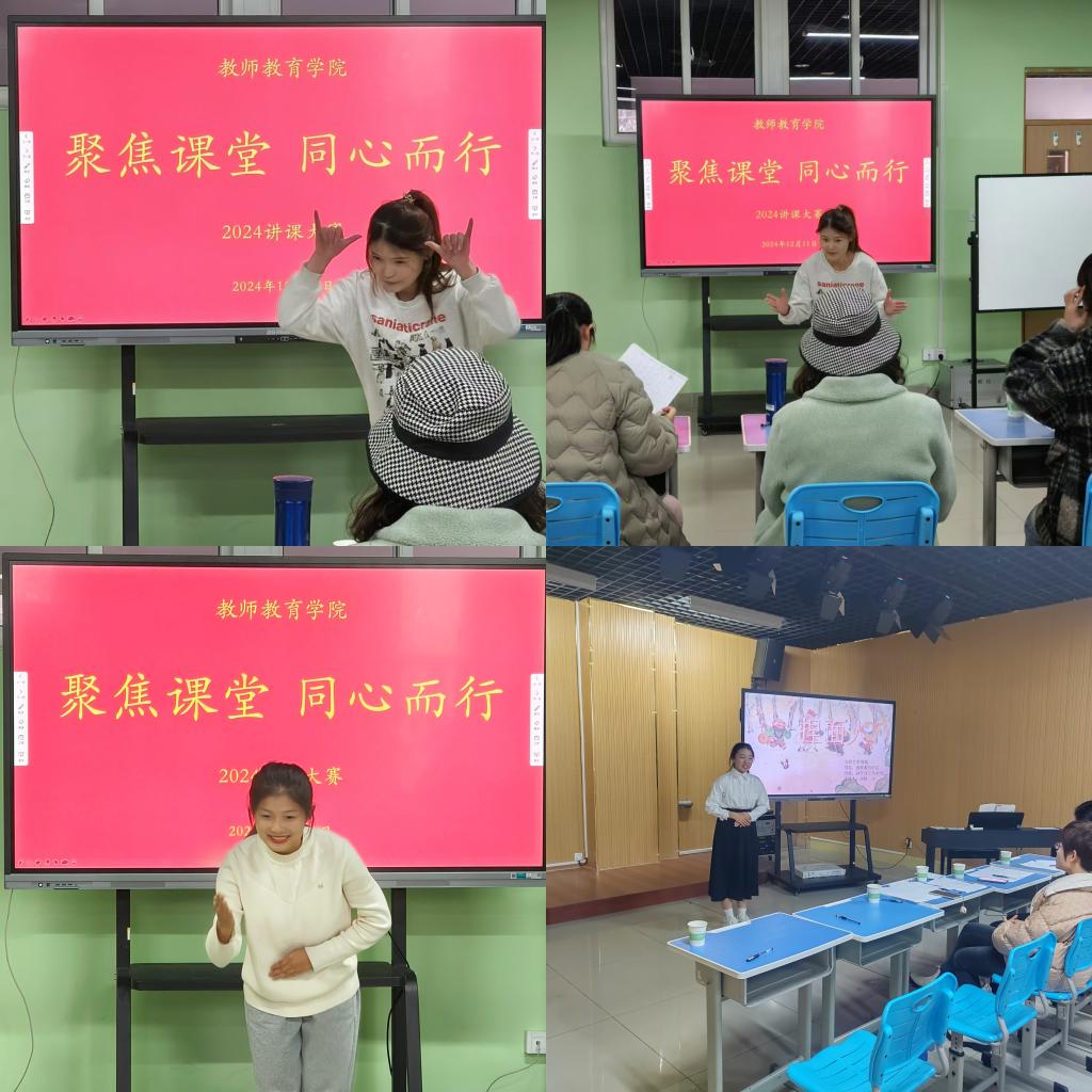 为提升学生的教学实践能力,促进学科知识与教学技能的有机融合,近日,教师教育学院举行“聚焦课堂,同心而行”2024讲课大赛,吸引了众多学前教育专业学子的参与。