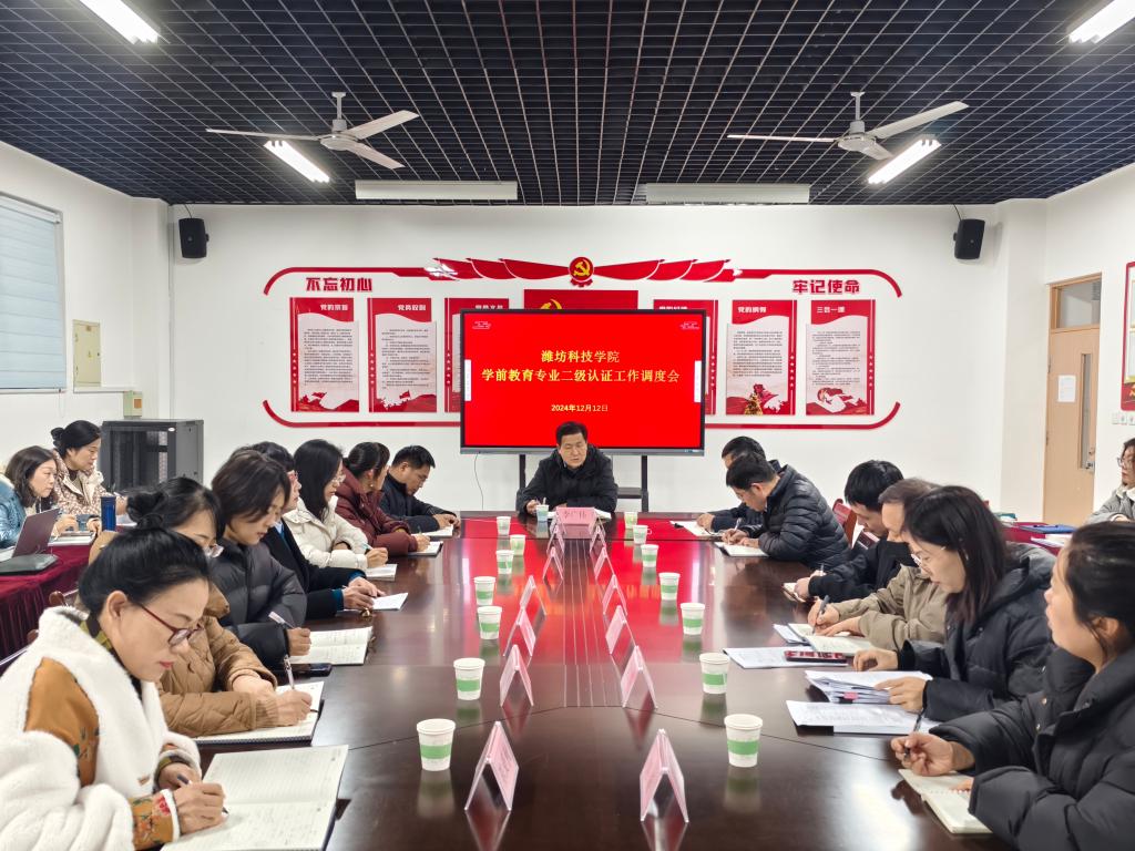 12月12日下午,潍坊科技学院学前教育专业二级认证工作调度会在教师教育学院217会议室召开。党委委员、副校长李广伟参加会议并讲话,质量与评建处、教务处、财务处、人事处、图书馆等相关部门以及教师教育学院专业认证工作核心成员参加会议。质量与评建处处长黄宗经主持会议。