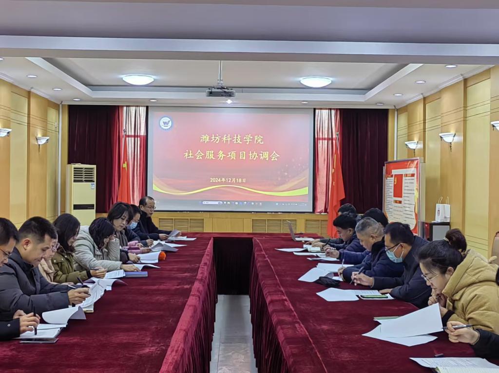 12月18日下午,学校在办公楼三楼东会议室召开社会服务项目协调会。社会服务处与二级学院分管社会服务项目负责人参加会议。