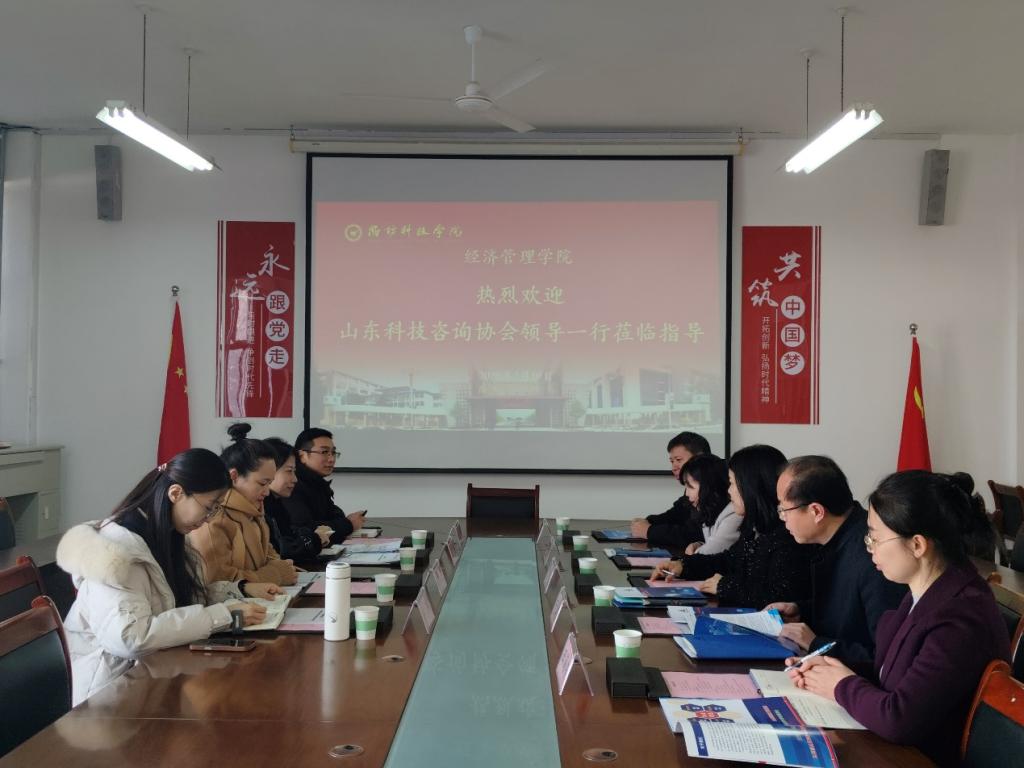 2月19日下午,山东科技咨询协会秘书长冯文杰一行4人到访潍坊科技学院并座谈交流。我校社会服务处处长于建春、经济管理学院院长丁莹莹、经济管理学院副院长孙翠萍、新时代乡村振兴与区域经济发展研究院院长助理田海燕、经济管理学院王常林教授参加座谈。