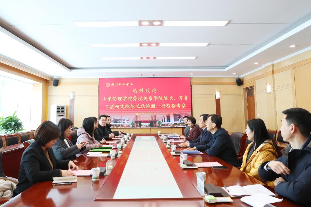 2月17日上午,山东管理学院劳动关系学院院长、齐鲁工匠研究院院长耿艳丽一行,在潍坊市总工会党组成员、副主席徐连奎,寿光市总工会党组书记、常务副主席韩效启等相关人员陪同下,到潍坊科技学院对寿光市工匠学院开展调研活动,潍坊科技学院校长、党委副书记魏华中,校委会成员、工会主席潘鲲等陪同调研并参加座谈会。通过座谈交流、实地考察相结合的方式,深入探讨了高技能人才培养新机制,为工匠学院服务区域产业升级把脉定向。