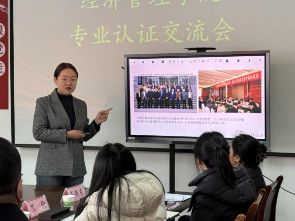 会上,丁莹莹指出本次会议是落实学校专业认证“对标整改、分层推进”部署的重要环节,旨在对标高标准建设指标,通过专家问诊把脉,精准补足专业建设短板。李瑞雪系统解析智能会计实验教学与专业认证的融合路径,提出以“课程目标达成度评价”为抓手,重构大数据会计课程模块,建议依托Python技术工具搭建数字化教学场景,通过校企联合开发实训项目强化学生业财融合能力。与会教师围绕认证指标中的“师资队伍支撑度”“实践教学创新性”等关键项展开讨论,形成课程体系动态调整、校企协同评价反馈等改进方案。